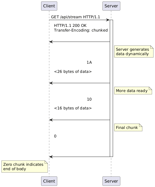 This implementation demonstrates the parsing logic for chunked encoding. Notice how the decoder reads each chunk size, extracts that many bytes, and continues until it encounters a zero-sized chunk. The complete body is reconstructed incrementally without ever knowing its total size upfront.