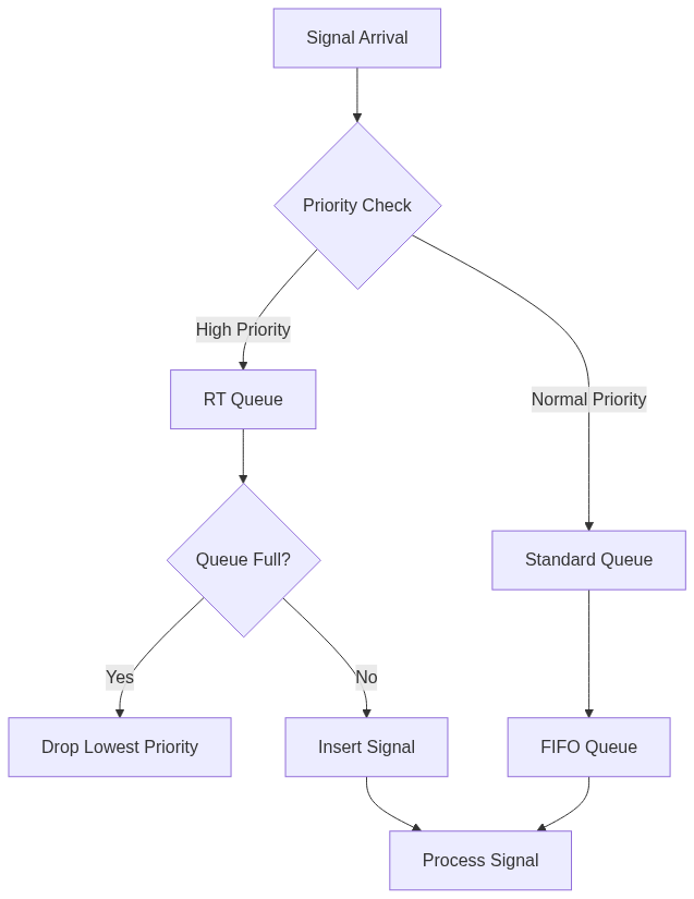 The real-time priority management system ensures that high-priority signals are processed before lower-priority signals. The following graph illustrates the flow of signal processing based on priority.